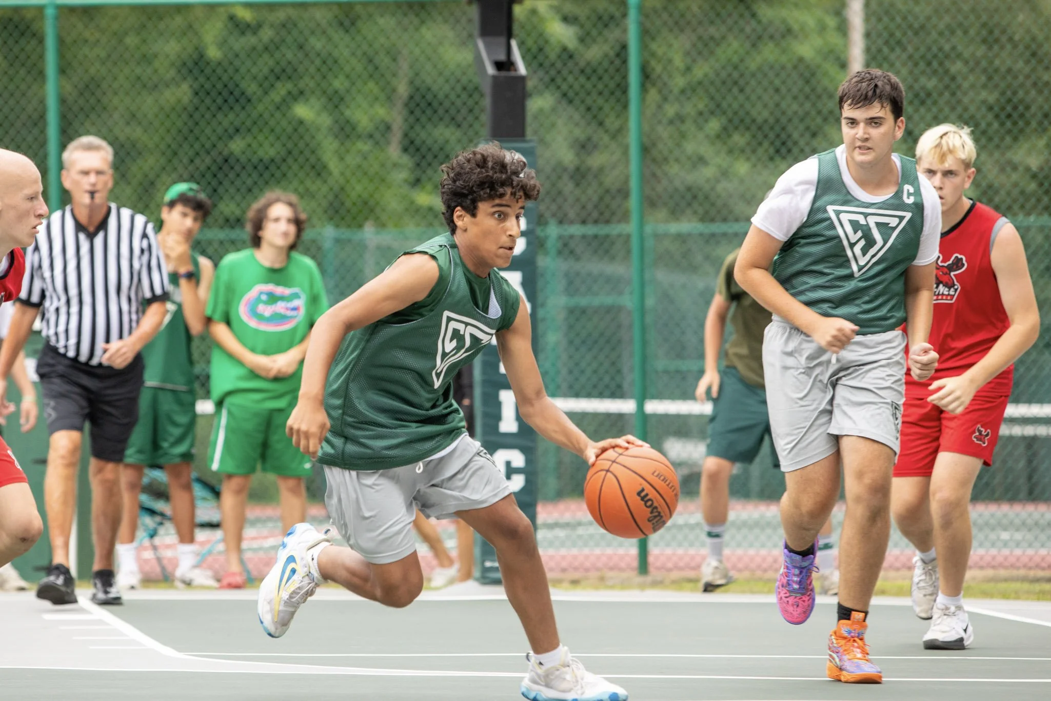 Camper Survey Says... Favorite Sports Activities: Slapball and Basketball. Above left: 2025 Centers. Above right: At the Nat Holman Tournament.