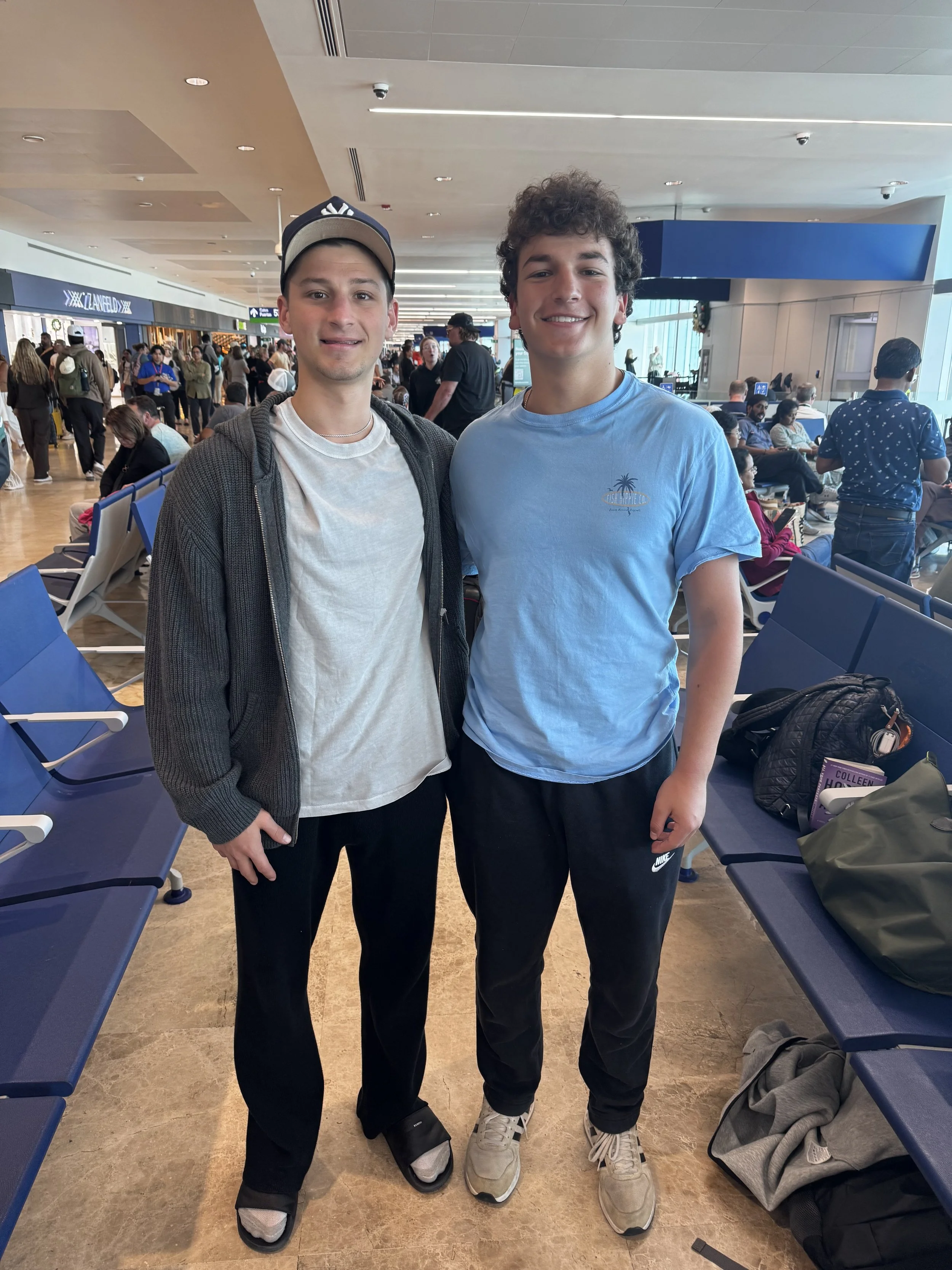 As always, we’ll start with RSSes (Random Scatico Sightings).... Reports of two independent RSSes with 2025 Inter Division Leader Emmett Miller, from a ski slope in Vermont (with his camper Ryan Percival) to outside a College Football Stadium in Florida (with brothers Greyson and Lucas Nestler). Emmett is currently a Junior at the University of Florida in Gainesville.... Two RSSes over winter break in Florida: 2025 Division Leader Katie Pargament and sisters Charley and Brooke Ecker.... On the streets in Windsor Terrace, Brooklyn (and clearly not dressed for the weather)—Alex Tergesen and Caleb Sanchez.... At AAU basketball tryouts in central New Jersey—divisionmates Ryder Millman and Evan Gilbert.... On vacation in Miami during Winter Break—divisionmates Jesse Gorin and Levi Gross.... And at an airport in Mexico—current counselor Zach Chait and former camper and counselor Max Rosh. In Max’s last summer as a counselor in 2021, Zach was in the Inter division (rising 8th-graders). No trouble making the connection (of course)....