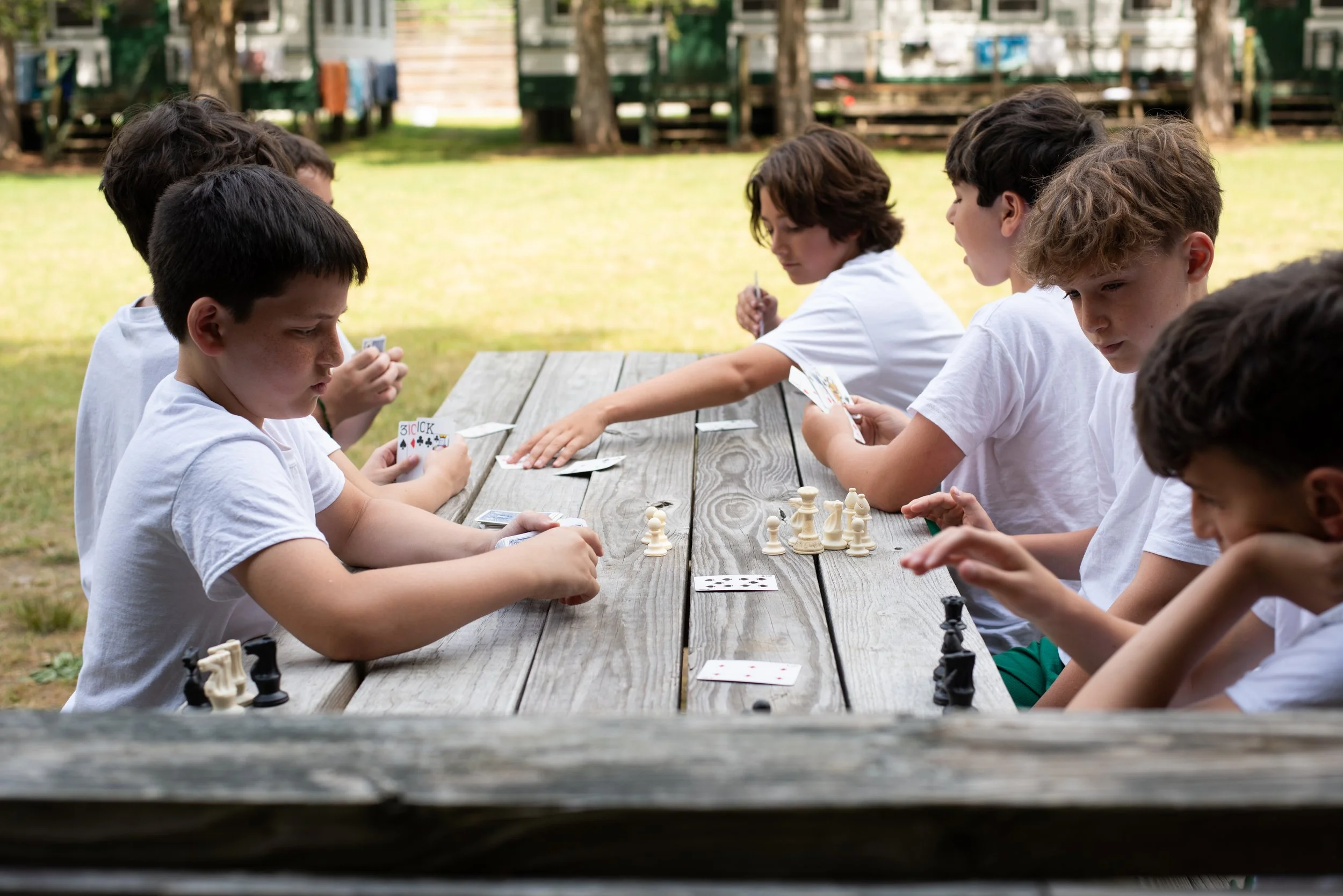 It feels liberating to say that faster and newer isn’t always better, and we’re lucky to operate a space and second home where kids and adults can escape AI’s relenting pull. Ken Vallario (back this year for a full summer!), once told me that he loves camp’s “inefficiency.” He was talking about all the ways you don’t take the shortest route from A to B at camp: whether it’s walking from the HC to the office, but getting derailed over the rave launch competition at the lake; or campers huddling around a radio at bedtime, catching the end of a baseball game when they don’t know what “FM” is; or heads bowing in concentration (and laughter) over Color War emblems carefully glued and sparkled by hand, when there’s probably a Cricut setting for that.